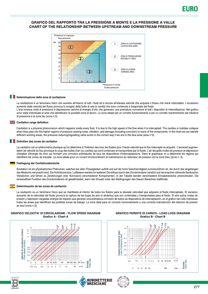 identifient les zones de travaille. La zone idéale pour un correct fonctionnement et maintenance du réducteur de pression est la zone bleu (zone n. 3).