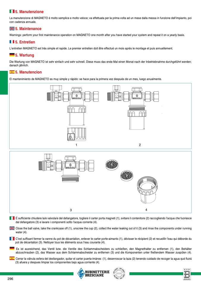 La manutenzione di MAGNETO è molto semplice e molto veloce; va effettuata per la prima volta ad un mese dalla messa in funzione dell’impianto, po