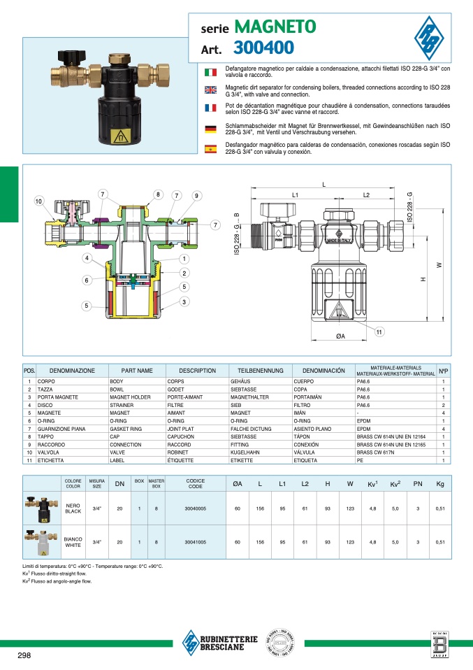 Desfangador magnètico para calderas de condensaciòn, conexiones roscadas segùn IS