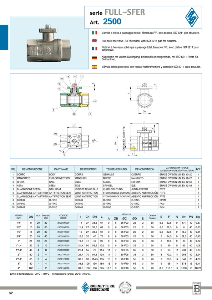 Limiti di temperatura: -20°C +160°C - Temperature range: -20°C +160°C.