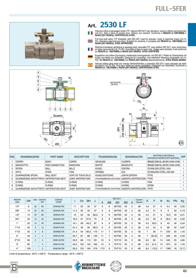 Limiti di temperatura: -20°C +160°C - Temperature range: -20°C +160°C