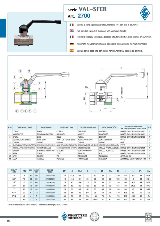 Limiti di temperatura: -20°C +160°C - Temperature range: -20°C +160°C