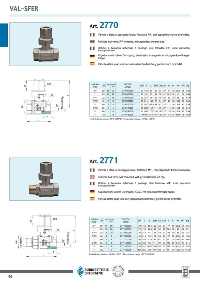 Limiti di temperatura: -20°C +160°C - Temperature range: -20°C +160°C