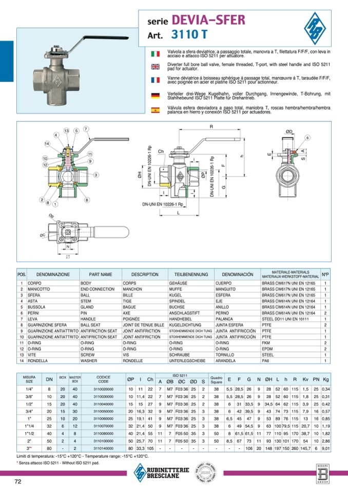 Limiti di temperatura: -15°C +120°C - Temperature range: -15°C +120°C
