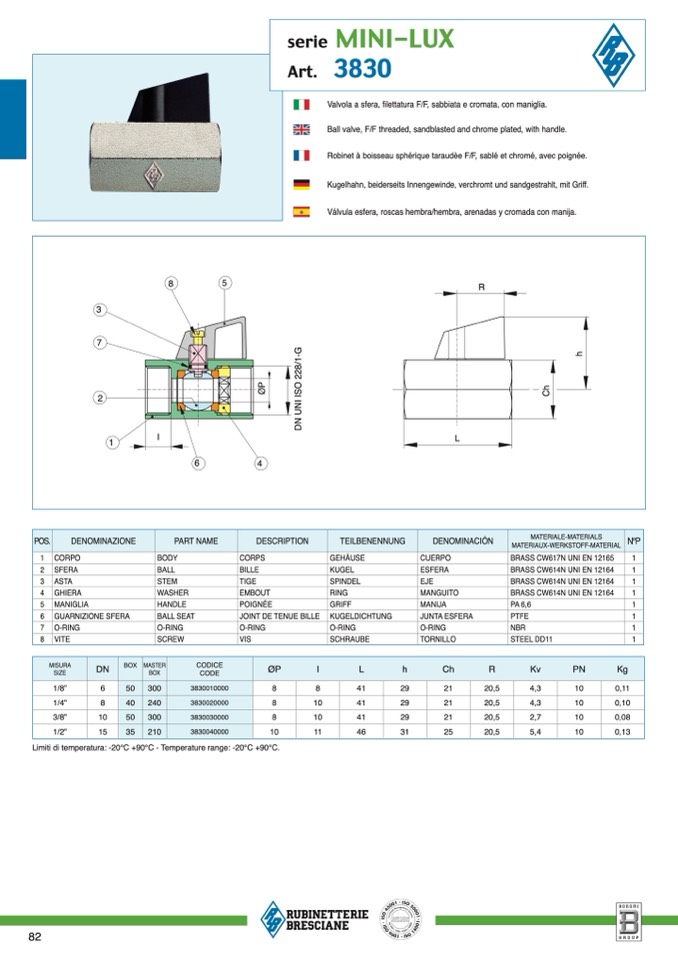 Limiti di temperatura: -20°C +90°C - Temperature range: -20°C +90°C
