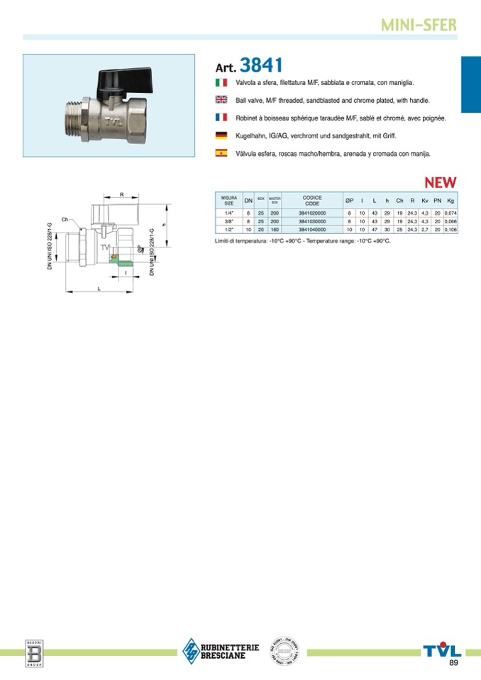 Limiti di temperatura: -10°C +90°C - Temperature range: -10°C +90°C.