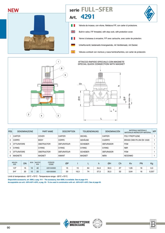 Limiti di temperatura: -20°C +75°C - Temperature range: -20°C +75°C