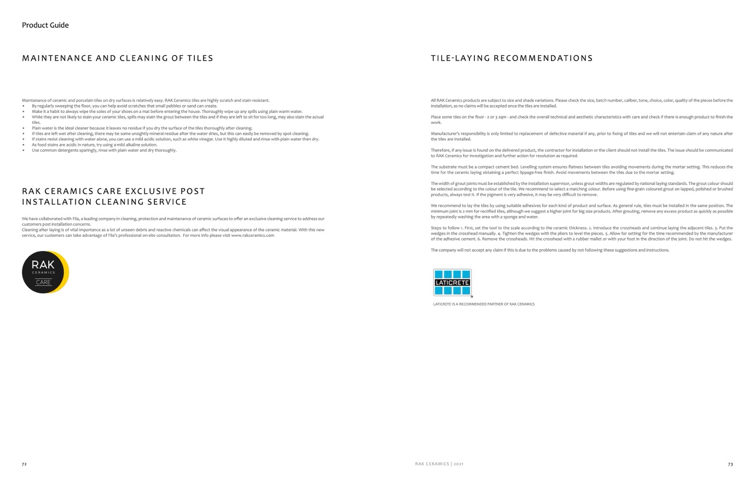 service, our customers can take advantage of Fila’s professional on-site consultation. For more info please visit www.rakceramics.com