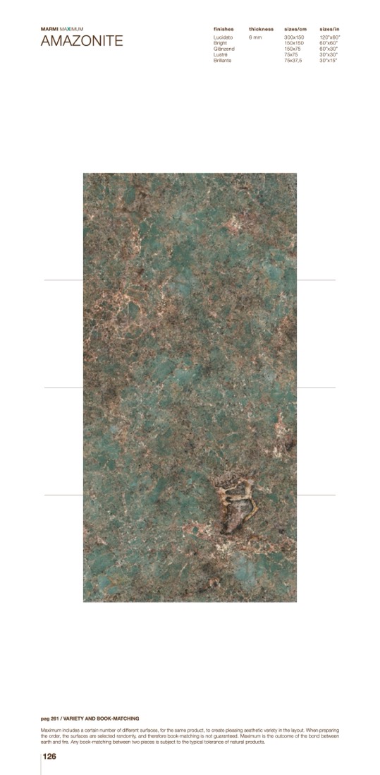 Maximum includes a certain number of different surfaces, for the same product, to create pleasing aesthetic variety in the layout. When preparing