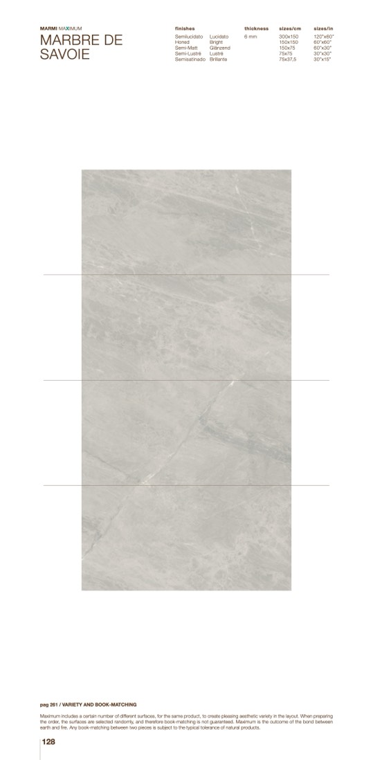 Maximum includes a certain number of different surfaces, for the same product, to create pleasing aesthetic variety in the layout. When preparing