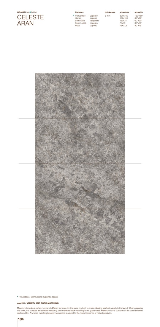 Maximum includes a certain number of different surfaces, for the same product, to create pleasing aesthetic variety in the layout. When preparing