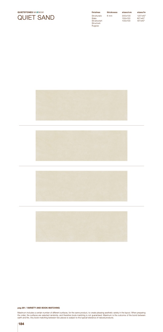 Maximum includes a certain number of different surfaces, for the same product, to create pleasing aesthetic variety in the layout. When preparing
