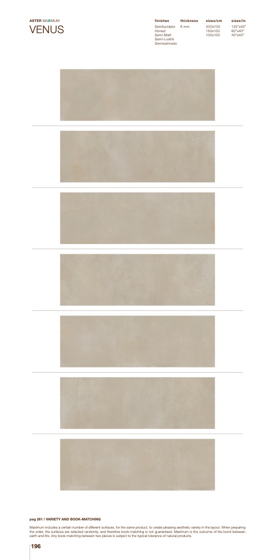 Maximum includes a certain number of different surfaces, for the same product, to create pleasing aesthetic variety in the layout. When preparing