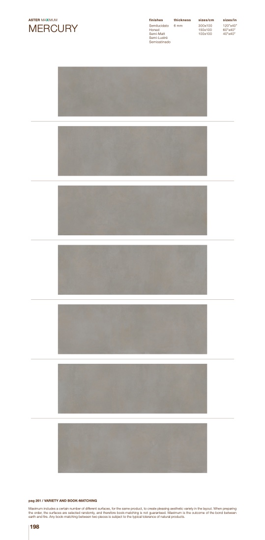Maximum includes a certain number of different surfaces, for the same product, to create pleasing aesthetic variety in the layout. When preparing