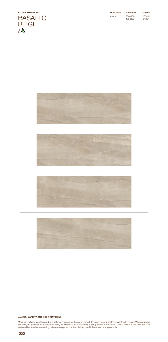 Maximum includes a certain number of different surfaces, for the same product, to create pleasing aesthetic variety in the layout. When preparing
