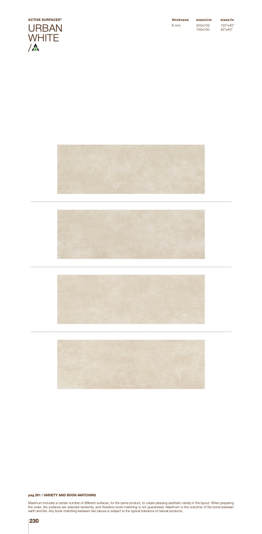 Maximum includes a certain number of different surfaces, for the same product, to create pleasing aesthetic variety in the layout. When preparing