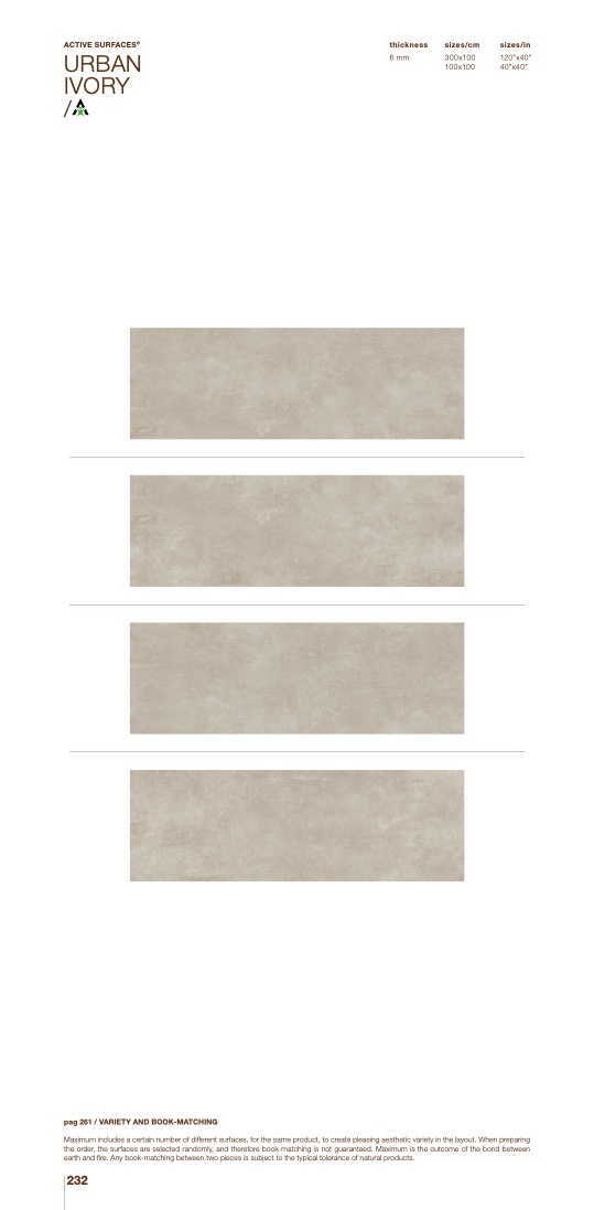 Maximum includes a certain number of different surfaces, for the same product, to create pleasing aesthetic variety in the layout. When preparing