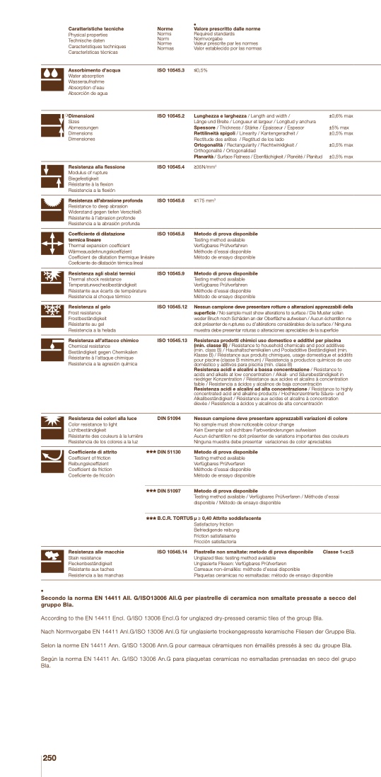 Secondo la norma EN 14411 All. G/ISO13006 All.G per piastrelle di ceramica non smaltate pressate a secco del