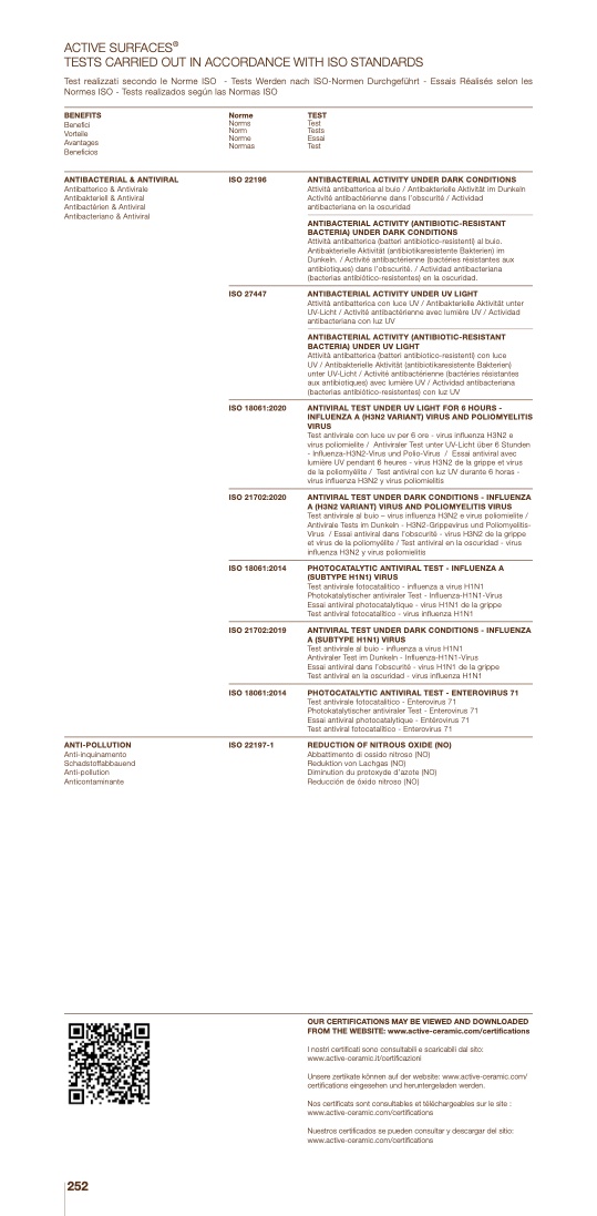 FROM THE WEBSITE: www.active-ceramic.com/certifications