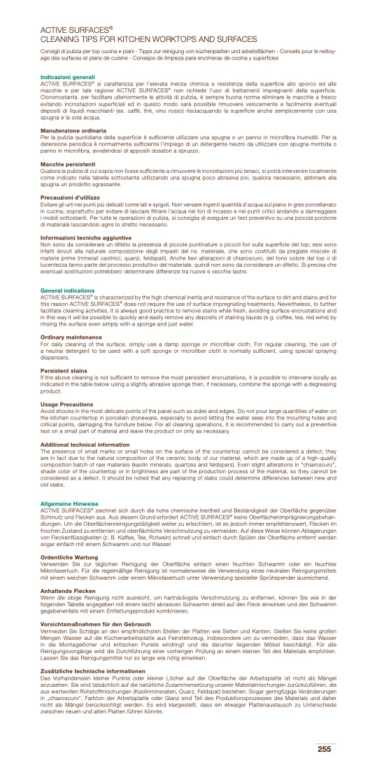 Consigli di pulizia per top cucina e piani - Tipps zur reinigung von küchenplatten und arbeitsflächen - Conseils pour le nettoy-