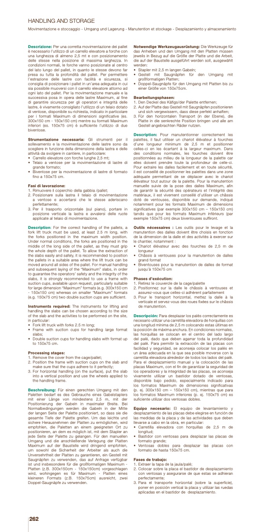 Movimentazione e stoccaggio - Umgang und Lagerung -