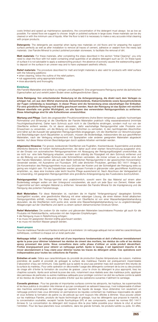 Alle Fiandre Materialien sind einfach zu reinigen und pflegeleicht. Eine angemessene Reinigung wertet die ästhetischen