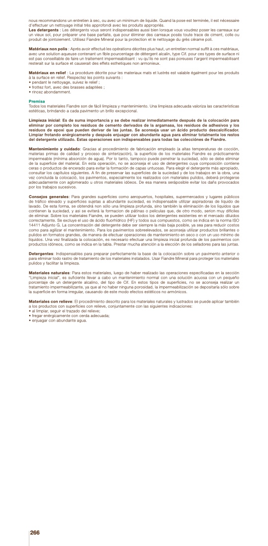 de eliminar. Sobre los materiales Fiandre, se pueden utilizar todos los detergentes existentes en el mercado diluidos