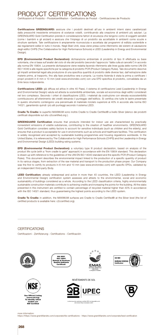 https://https://www.granitifiandre.com/corporate/tile-certifications - https://www.granitifiandre.com/corporate/leed-certification