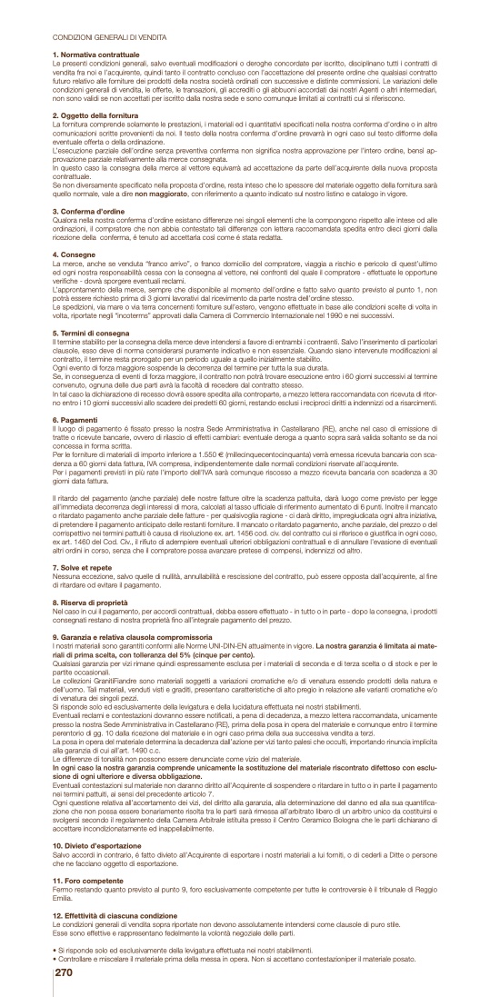 Le condizioni generali di vendita sopra riportate non devono assolutamente intendersi come clausole di puro stile.
