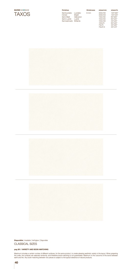 Maximum includes a certain number of different surfaces, for the same product, to create pleasing aesthetic variety in the layout. When preparing