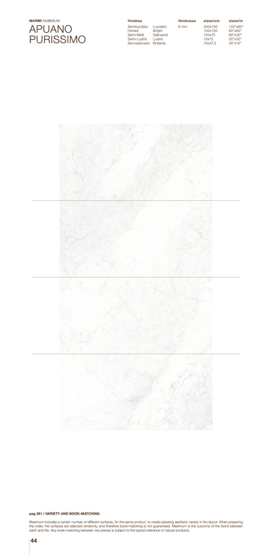 Maximum includes a certain number of different surfaces, for the same product, to create pleasing aesthetic variety in the layout. When preparing