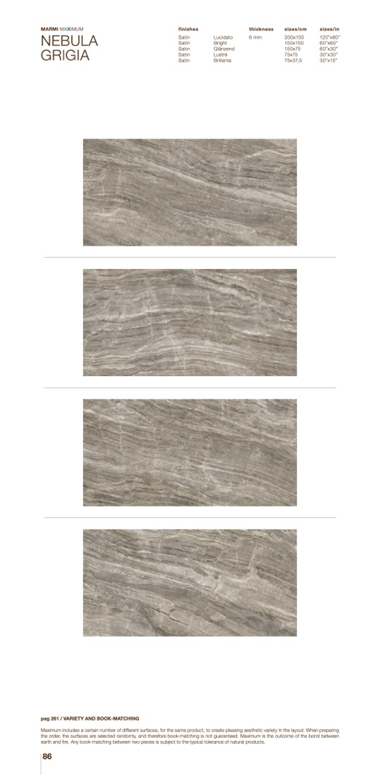 Maximum includes a certain number of different surfaces, for the same product, to create pleasing aesthetic variety in the layout. When preparing