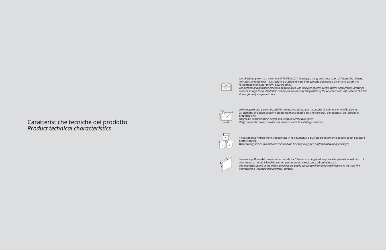 The pictorial and narrative collection by Wall&decò. The language of large decors, where photographs, drawings,