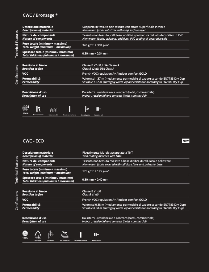 Tessuto non tessuto, cellulosa, additivi, spalmatura del lato decorativo in PVC