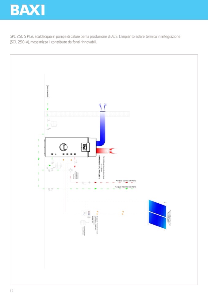 SPC 250 S Plus, scaldacqua in pompa di calore per la produzione di ACS. L’impianto solare termico in integrazione