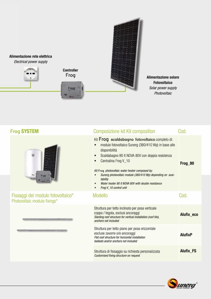 Kit Frog scaldabagno fotovoltaico completo di: