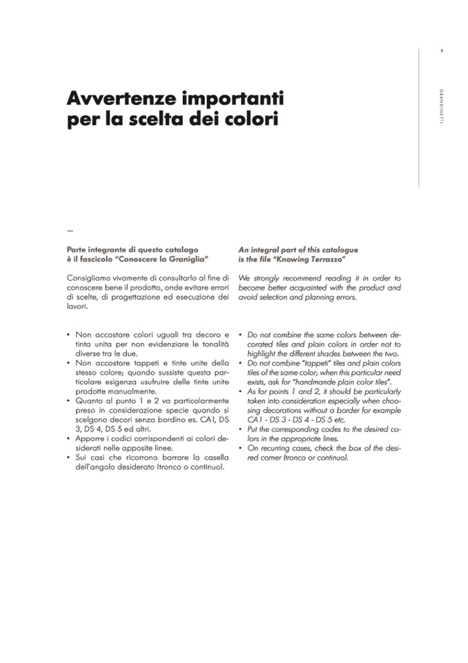 • Do not combine “tappeti” tiles and plain colors
