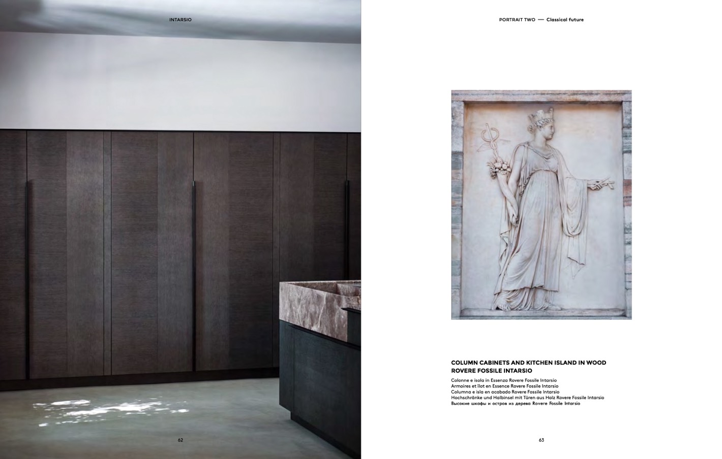 Armoires et îlot en Essence Rovere Fossile Intarsio