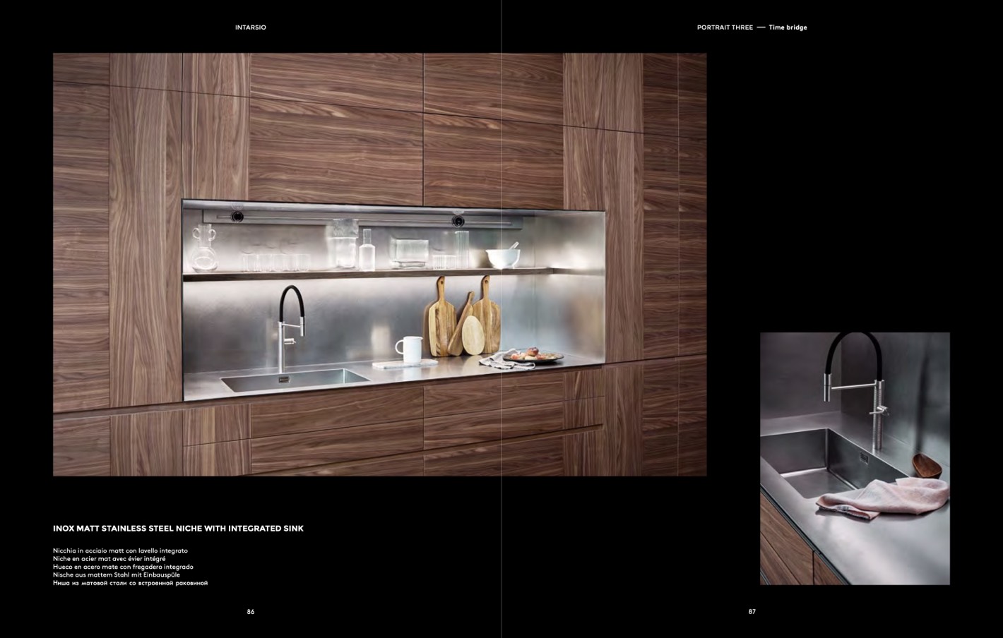 Nische aus mattem Stahl mit Einbauspüle