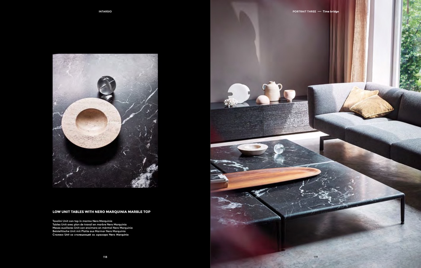 Столики Unit со столешницей из мрамора Nero Marquinia