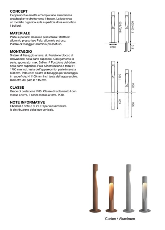 in superficie: H 1100 mm incl. testa dell’apparecchio.