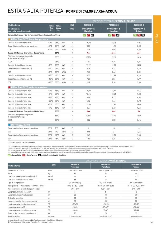 SPECIFICHE TECNICHE POMPA DI CALORE