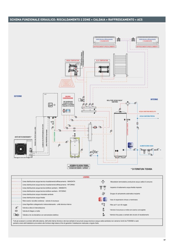 SCHEMA FUNZIONALE IDRAULICO: RISCALDAMENTO 2 ZONE + CALDAIA + RAFFRESCAMENTO + ACS
