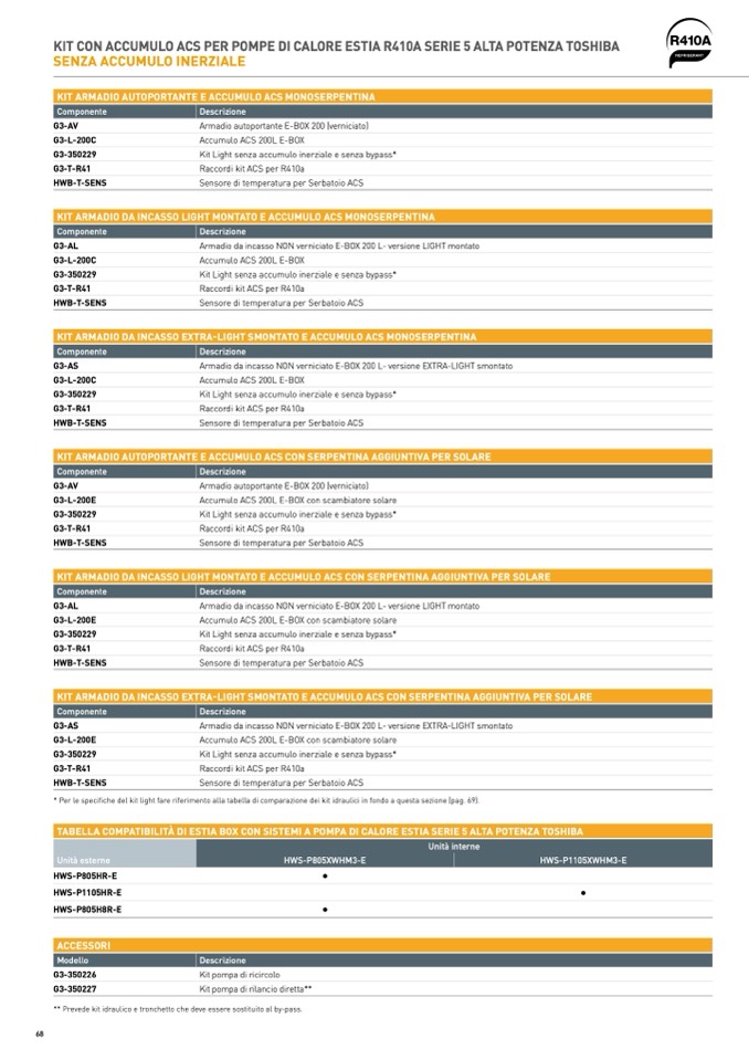 KIT CON ACCUMULO ACS PER POMPE DI CALORE ESTIA R410A SERIE 5 ALTA POTENZA TOSHIBA