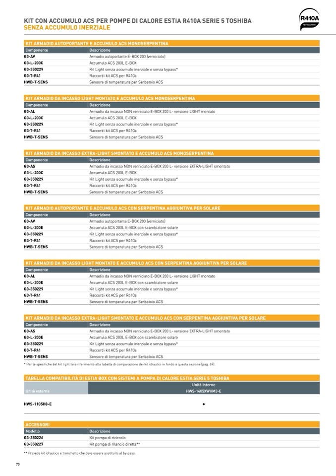 KIT CON ACCUMULO ACS PER POMPE DI CALORE ESTIA R410A SERIE 5 TOSHIBA