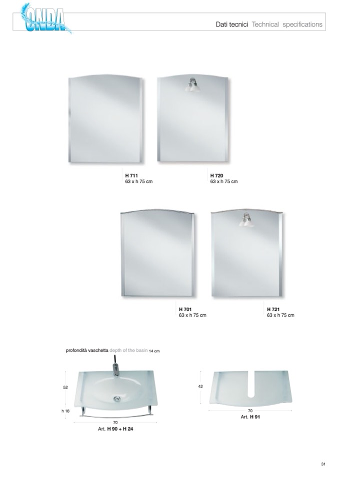 profondità vaschetta depth of the basin 14 cm