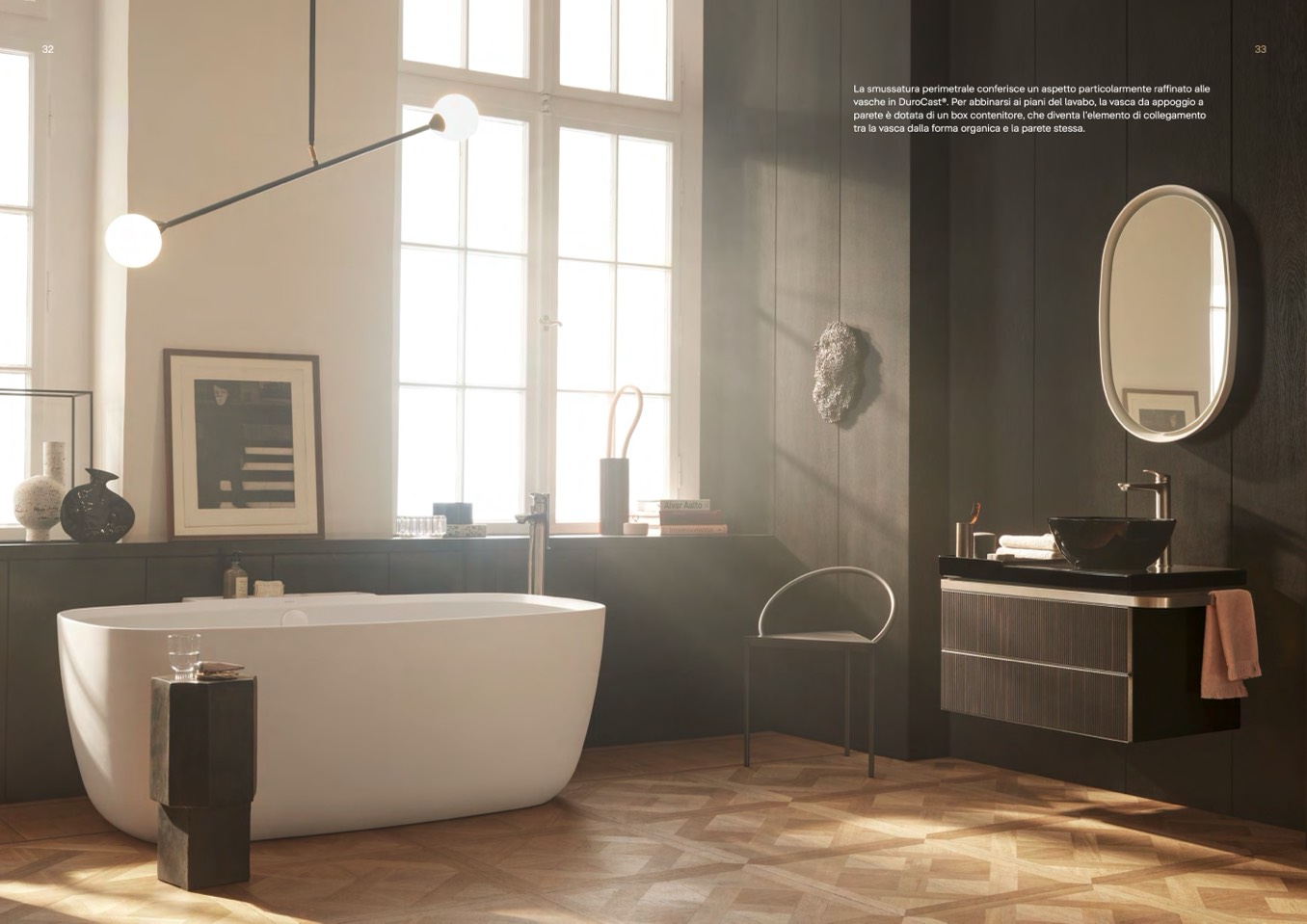 tra la vasca dalla forma organica e la parete stessa.