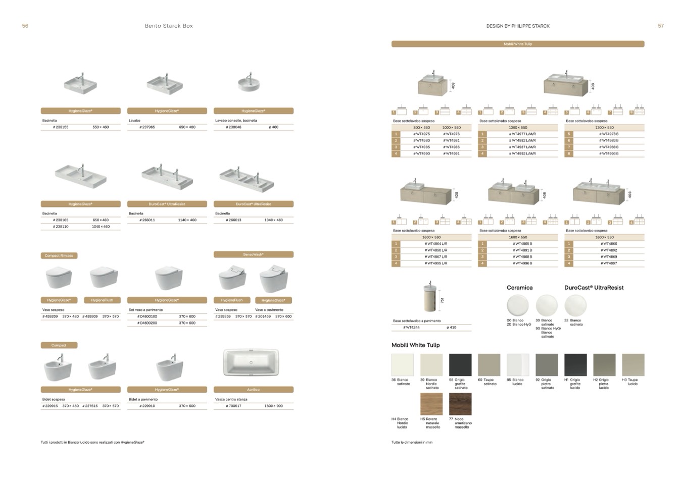 Tutti i prodotti in Bianco lucido sono realizzati con HygieneGlaze