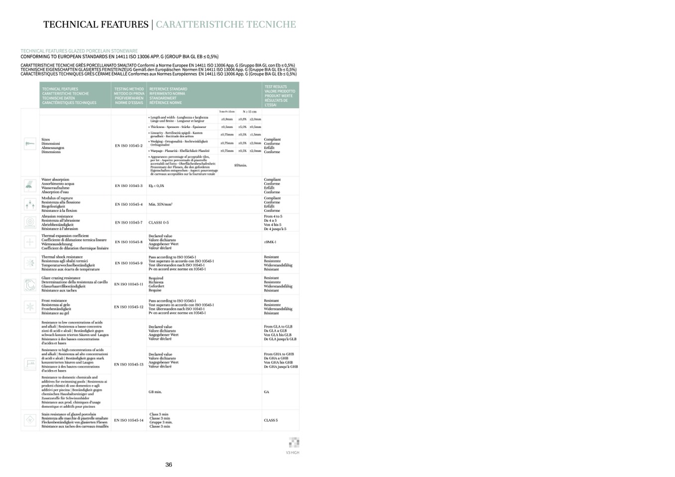 CONFORMING TO EUROPEAN STANDARDS EN 14411 ISO 13006 APP. G (GROUP BIA GL EB ≤ 0,5%)