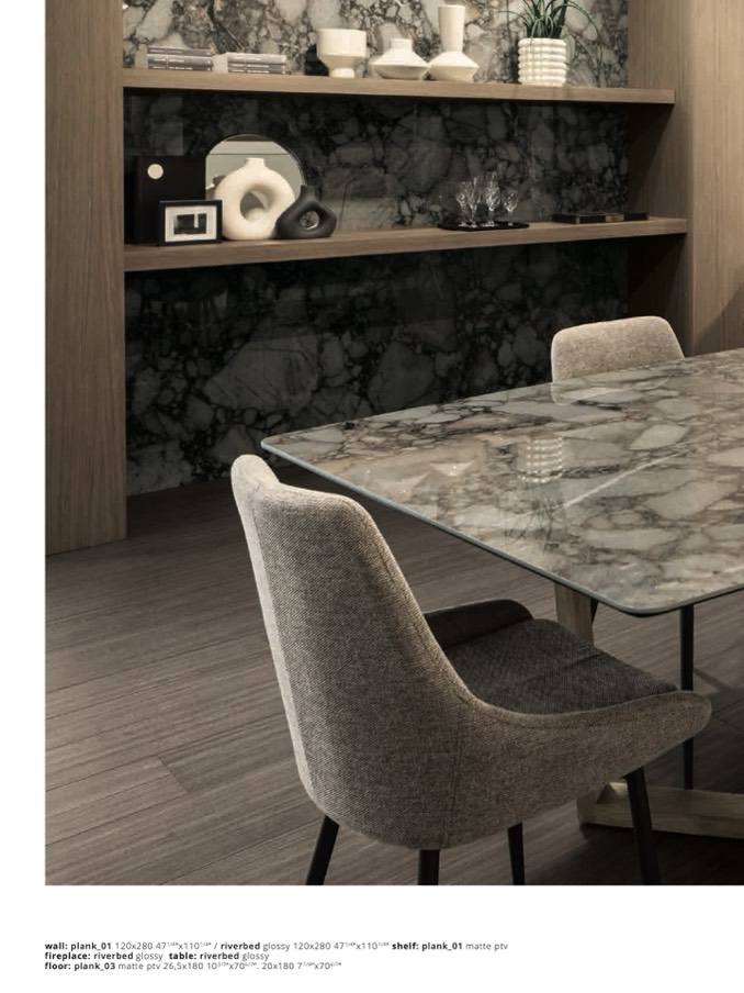 wall: plank_01 120x280 471/4”x1101/4” / riverbed glossy 120x280 471/4”x1101/4” shelf: plank_01 matte pt